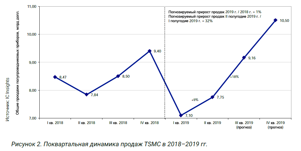 На рис. 2 демонстрируется обновленный недавно прогноз поквартального дохода от продаж ИС в 2019 г. Отмечается два момента: