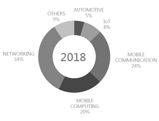 By its application Automotive is the largest consumer group. The aerospace industry occupies only 6.4% of the market in 2018. The consumer electronics market share in 2018 is 19.4% and it will grow rapidly from 2019 to 2025. In 2018 medical equipment occupies 9.6 % of the market. The market share of information technologies and telecommunications in 2018 is 15.1%. Other industries have a market share of 15.6% in 2018.