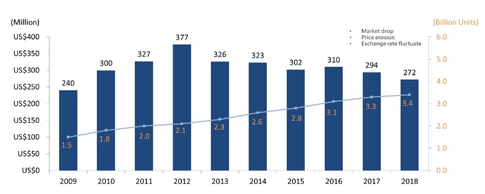 The top 10 manufacturers accounted for 65.5% of the global market in 2018. If you are choosing a company for a distribution agreement among the market leaders pay special attention to the places of companies in 2018 and 2009, especially those that have maintained sales volume. They have not just maintained, they have increased their market share. Indirectly this indicates technological and price leadership. Look at figure 1 from the presentation of the company “TXC”.