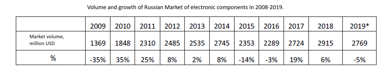 So, the market of imported electronic components in Russia is approximately 2.8 billion USD.