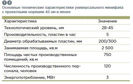В t3 приведены основные технические характеристики универсального минифаба с проектными нормами 45 нм и менее.