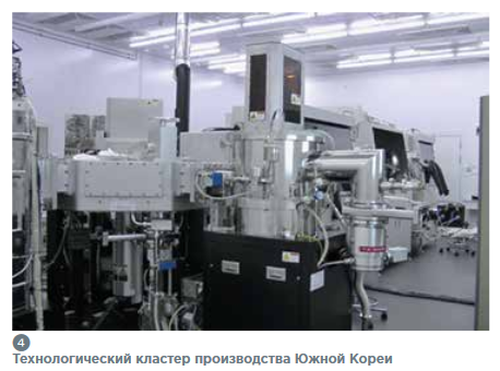 На РИС4 показан пример комплексного технологического кластера Южно-Корейского производства для ионно-плазменной очистки и напыления структур, приспособленного для многономенклатурного мелкосерийного производства.