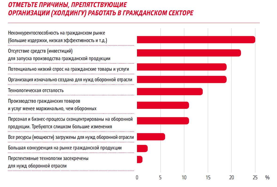 Рисунок 1. Причины, препятствующие развитию производства гражданской продукции.
