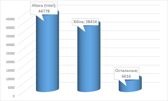 Если интересно какая логическая емкость наиболее популярная, то будет большим сюрпризом, что более 50% всех программируемых логических матриц составляют CPLD — т.е. схемы малой емкости до 10К логических блоков (примерно до 100К вентилей).