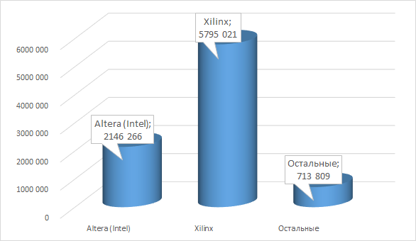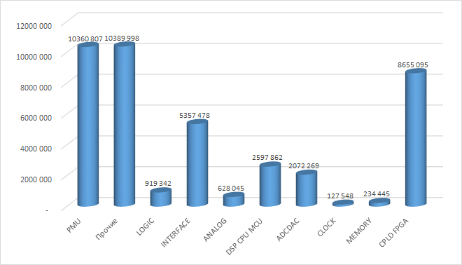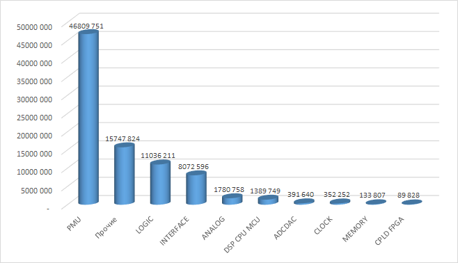 На первом месте по стоимости — Прочие (нераспознанные схемы), на втором схемы питания — более 10 млн $ — но это за счет стоимости, на третьем месте — FPGA/CPLD — с более 8 млн $, при том что их ввезли меньше всего в штуках.