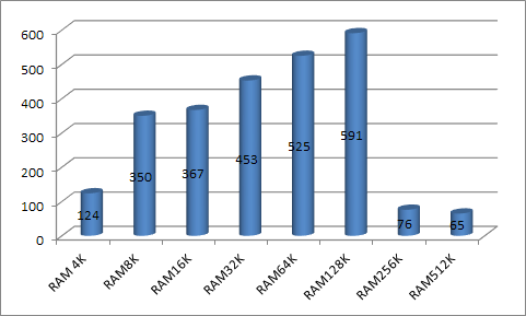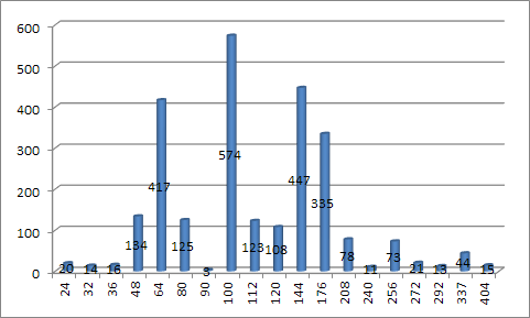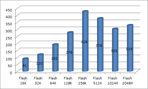 Еще раз, это означает не то что микроконтроллеров с 256КБ продавалось больше всего (у нас не было в 2008 году данных об объемах продаж), но это означает что больше всего предлагается разных номиналов микроконтроллеров с 256КБ. И скорее всего раз их больше всего предлагается, то и объем рынка для них самый большой. Конечно же в данном методе множество изъянов (один и тот же номинал может иметь разные градации по температурным диапазонам, и это будет учитываться как разные номиналы) Но что есть, то есть. Аналогично провели исследование по числу выводов корпуса.