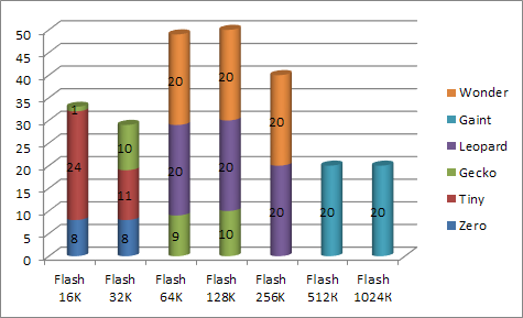Как же мы ответили на эти вопросы в 2008? Маркетинговые исследования, высокооплачиваемые консультанты, эксперты, аналитические справки, жизненный опыт? Нет, все это не работает. Точнее не работало в 2008 году, все носило субъективный характер, и аргументировалось только словами. Потому что не было никаких данных. Никто не мог сказать, сколько и какие микросхем ввозят в страну или сколько их вообще потребляют в мире. Многие предприятия даже не имели своей внутренней базы данных по используемой номенклатуре. Продавцы не раскрывали свои продажи. Ничего не было, что бы указывало на штуки. Поэтому было принято решение как всегда опереться на опыт иностранных аналогов. Наверное все же маркетологи STM, NXP и прочих Renesas лучше «чувствуют» рынок, чем мы. И хотя они так же не за что не скажут сколько и каких микросхем продают, но по популярности (а значит и массовости) микросхемы можно судить опираясь на многообразие представленной на рынке номенклатуры. Т.е. чем больше различных вариантов микроконтроллера с одним объемом Flash памяти от нескольких производителей, тем больше емкость рынка и значит микроконтроллер с этим объемом будет более востребован. Если среди всех 32-х битных микроконтроллеров больше всего номиналов с ~100 ногами, то именно 100 выводов — это то число которое наиболее востребовано разработчиками аппаратуры. Для проведения анализа были проанализированы сайты ведущих разработчиков микроконтроллеров — TI, STM, NXP, Renesas, Microchip и уже не существующий сейчас EnergyMicro. Через формы для поиска компонент задавали требуемый нам параметр, например объема Flash (16К, 32К, 64К и так далее) и считали сколько номиналов нам выдавал производитель, собирали и анализировали.